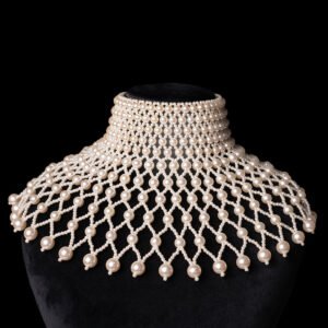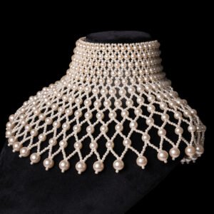– Exquisite Design: This necklace is a work of art, covering your entire shoulder and neck area with a stunning display of lustrous synthetic pearls.