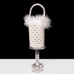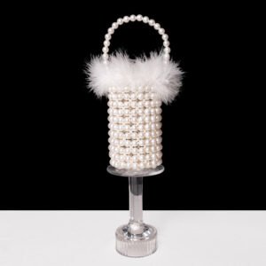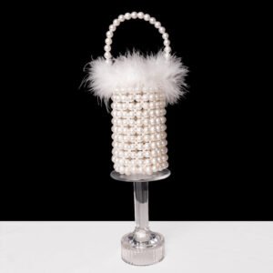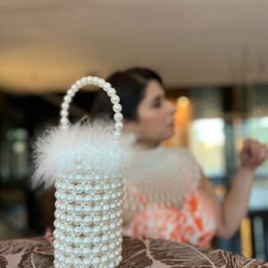 – Pearl beaded bag handcrafted with synthetic pearls by an Indian artisan.